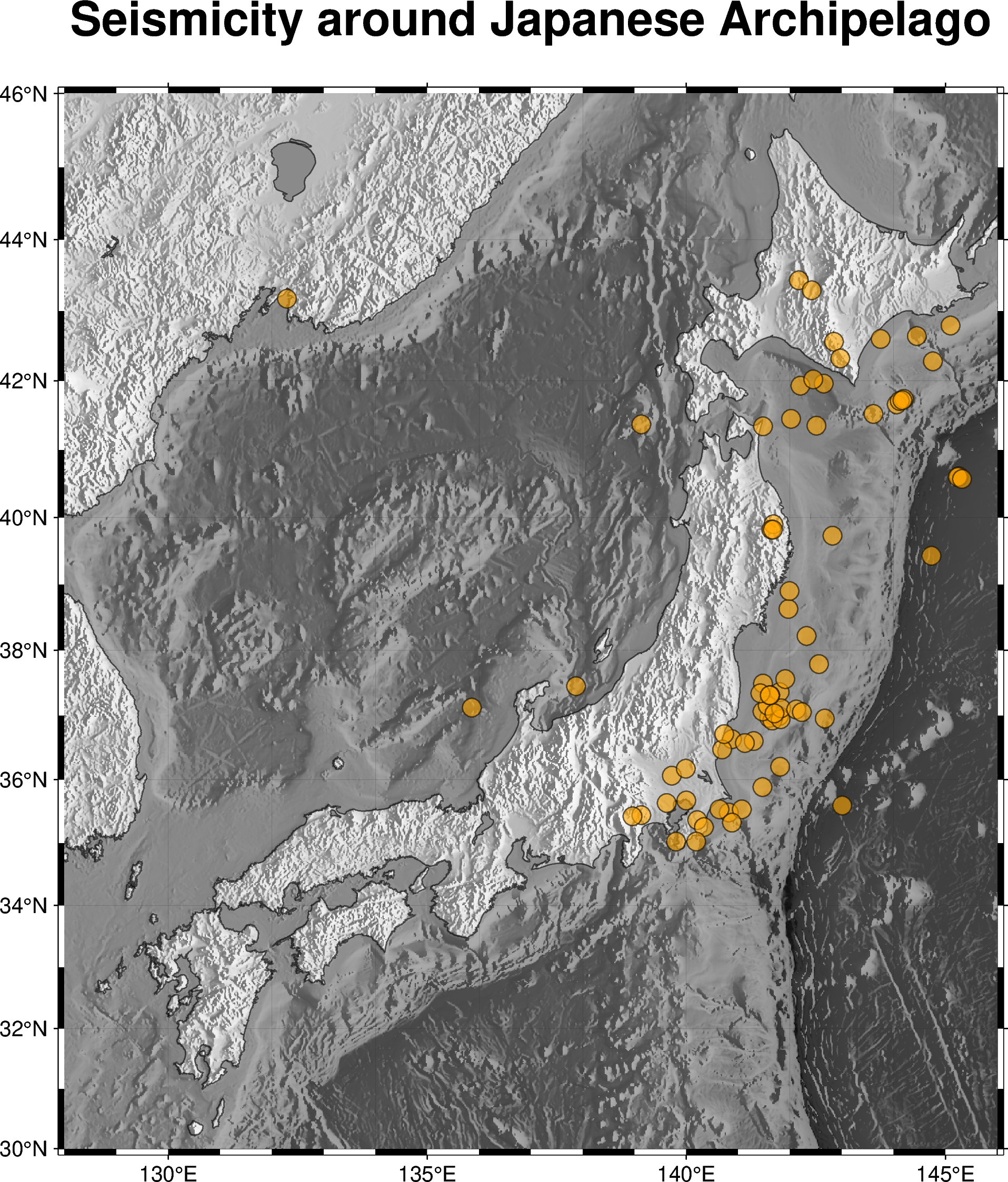 frame = ['WSen+tSeismicity around Japanese Archipelago', 'xaf', 'yaf'],