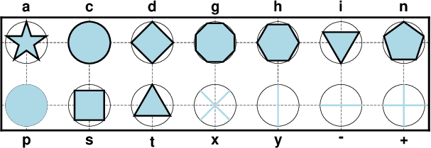 name = ['circle', 'star', 'inv. triangle', 'triangle', 'square', 'diamond']